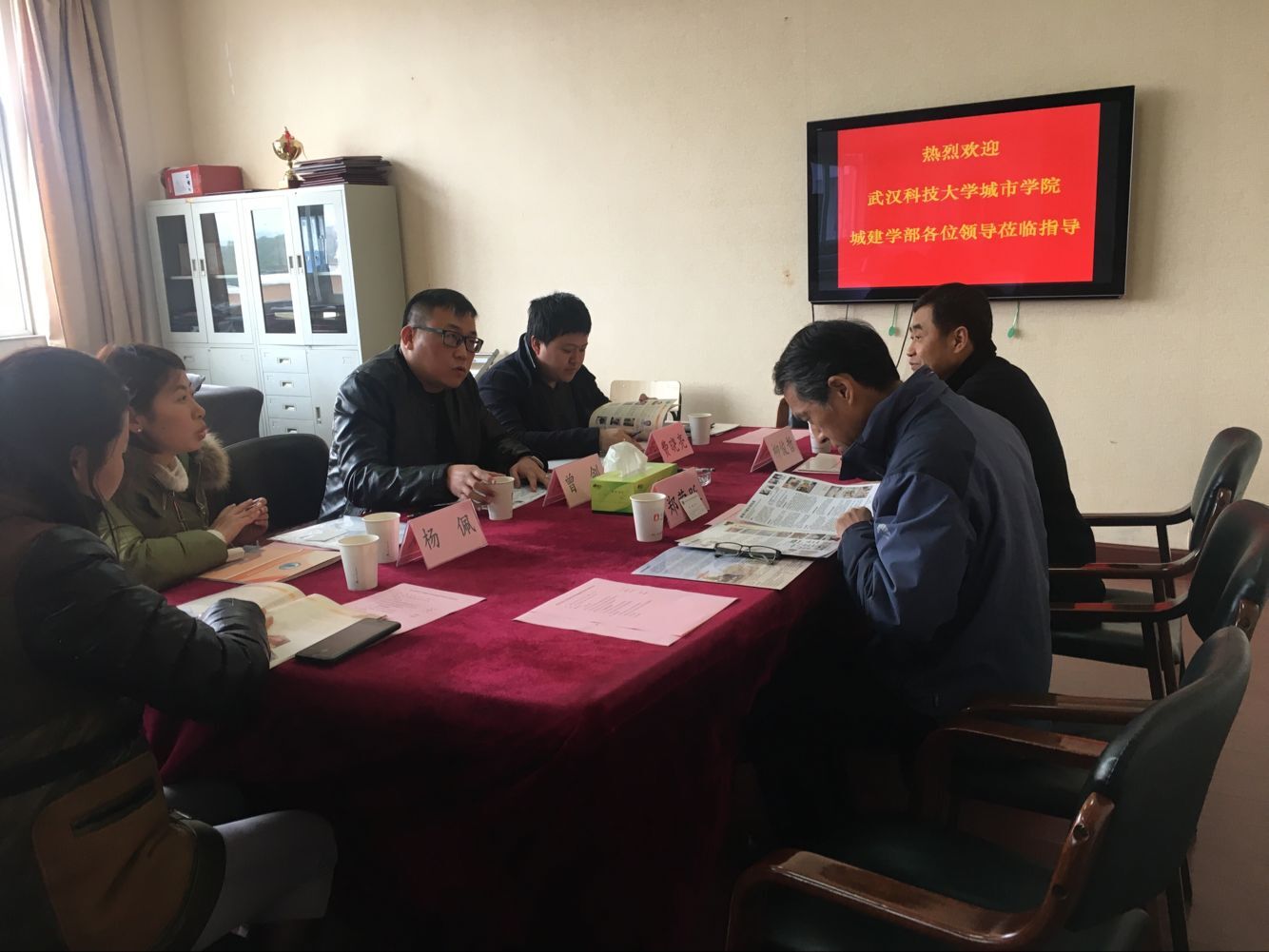 2月23日下午,武汉科技大学城市学院城建学部副主任曾剑一行4人来我校建工学院调研。建工学院院长郑荣跃、副院长柳俊哲等接待了来访客人。