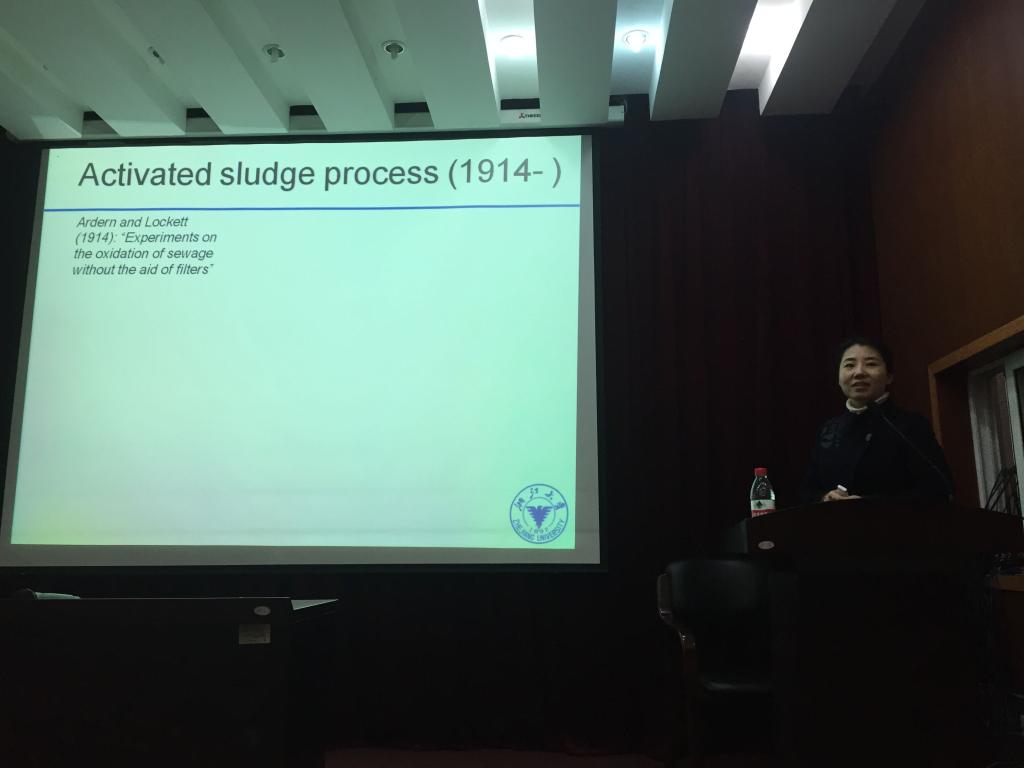 Boeing教授介绍了有关在新墨西哥的沙漠坑洞中从细菌到鱼的食物网转变的研究成果,分别从细菌,到浮游动物、底栖无脊椎动物、鱼研究生物与水质参数的关系,发现不同梯级的物种与水质有相应的关系。浙江大学逯慧杰研究员讲授了有关污水处理中资源回收相关的研究,分别从卫生纸回收、P回收、藻朊酸盐回收、聚羟基脂肪酸(PHAs)回收及生物能利用五大可回收利用资源方面进行阐述,许多新颖的回收技术吸引了大家的关注。讲座结束后的提问环节,现场师生与两位教授进行了深入互动交流,学术气氛浓厚。