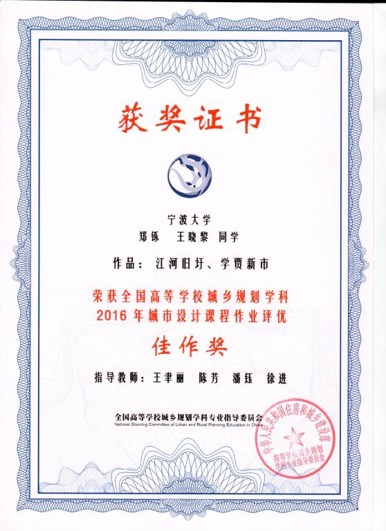 城乡规划专业学子在2016中国高等学校城乡规划作业竞赛中获奖