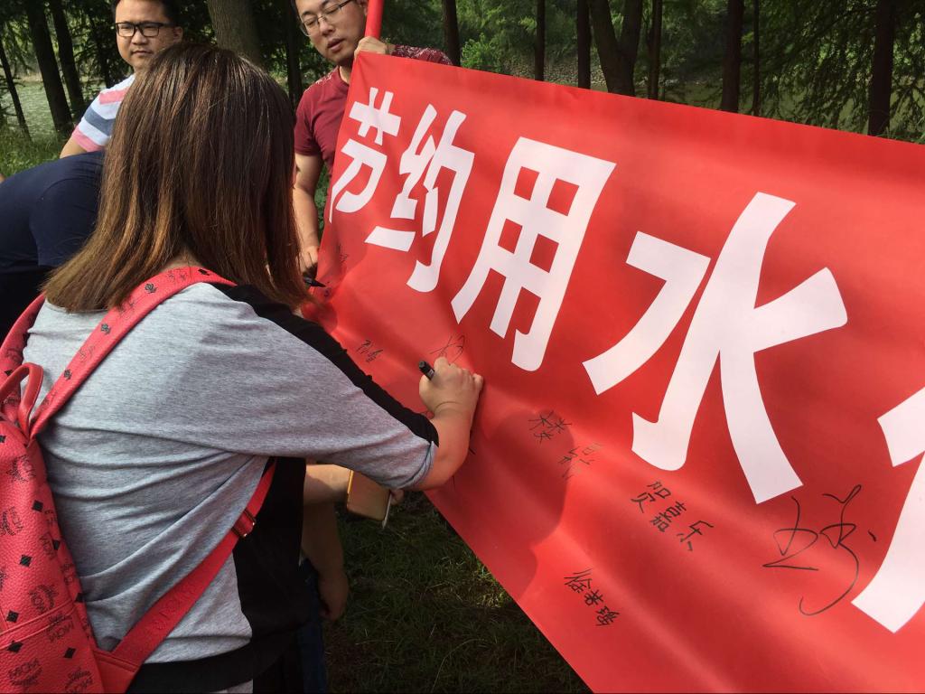 6月7日下午14:00在鄞州区章水镇皎口水库活动正式开始。在水库管理人员的带领下各小学生、学生家长同清源志愿者一起参观了皎口水库水源地。到达水源地之后,清源志愿者进行现场水质检测,演示相关仪器检测水的溶解氧等指标,并让小朋友们尝试用PH试纸测水样的酸碱性。之后大家一起参观了壮观的水库大坝,在参观的过程中清源中心负责人周阳靖给小朋友们讲解了饮用水的净化流程及宁波饮用水源地大致情况。活动的最后,所有人一起在节水宣传的横幅上签上了自己的名字,共同承诺保护我们的饮用水源。经过这次“饮水思源”活动,相信小朋友们的心中已种下“爱水护水”的种子,并将会慢慢发芽。