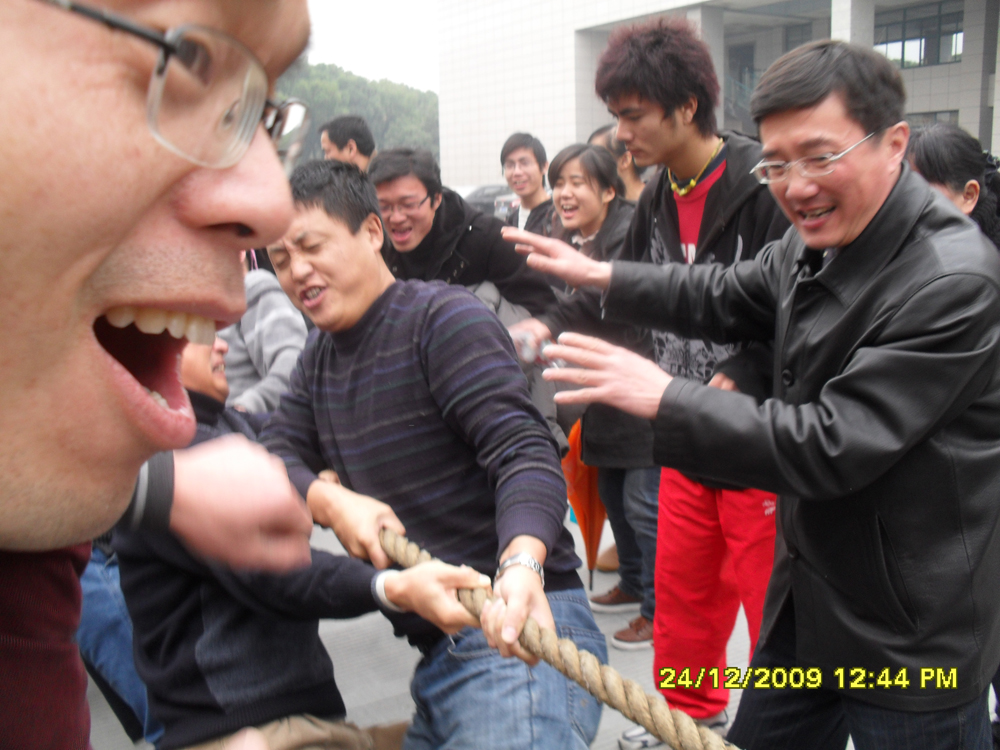 有四十余位教职工来到现场,他们亲历了拔河赛共五轮的艰辛晋级过程,他们或倾尽全力参战,或奋力加油呐喊,充分体现了较强的集体荣誉感和归属感。