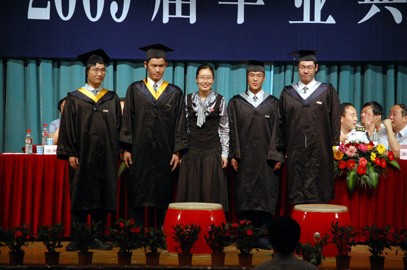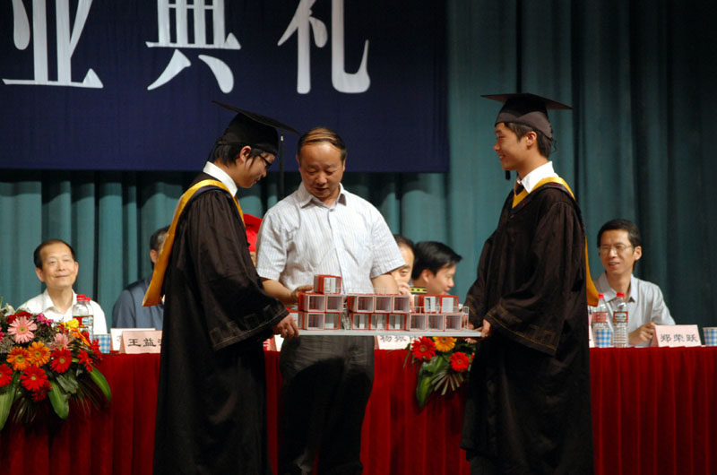 典礼上还公布了获得2009届省级、校级优秀毕业生荣誉的学生名单、获得“北仑房产”励志助学金的毕业生名单和获得2009年“建工学院考研金牌班级”的班级名单,主席台就座领导为相关获奖集体和个人颁奖。毕业生代表曹茜茜、毕业国防生代表陈绍飞同学在典礼上作了发言,毕业班代表还向学院赠送了纪念品,祝愿母校办学事业蒸蒸日上。最后,校党委副书记、副校长、建工学院院长唐绍祥、学院党委书记王益澄为全体毕业生授予学位、颁发毕业证书并与毕业生合影留念,中国人民解放军驻黑料社