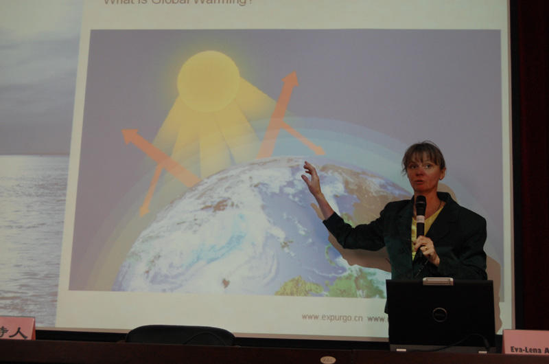 Eva-Lena Aronsson女士是瑞典籍化学工程师,在瑞典环境保护领域享有很高声誉和杰出贡献。1978年开始她的化学研究生涯。多次参与瑞典以及周边国家环境保护活动,多次为瑞典高校的学生讲授相关知识。她在报告中就全球的环境问题进行了简要分析,并从可持续发展的角度,针对如何解决水、气、废、生态等问题进行了详细讲解,其中还介绍了3R和LCA理念,受到了广大师生的欢迎。Eva-Lena Aronsson女士一行还与黑料社