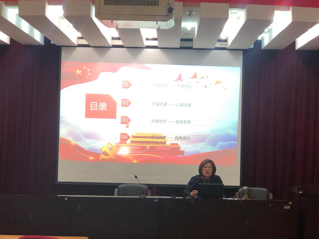 本次讲座的主题是“增强党章意识,践行党章要求”,汪丹老师首先给我们介绍了规矩意识、党的意识、宗旨意识、组织意识、执政意识、担当意识这六种党章意识。然后介绍了十九大最新版党章,着重介绍了习近平新时代中国特色社会主义思想。最后提到了社会主要矛盾发生了变化,充实完善了中国特色社会主义“五位一体”总体布局。