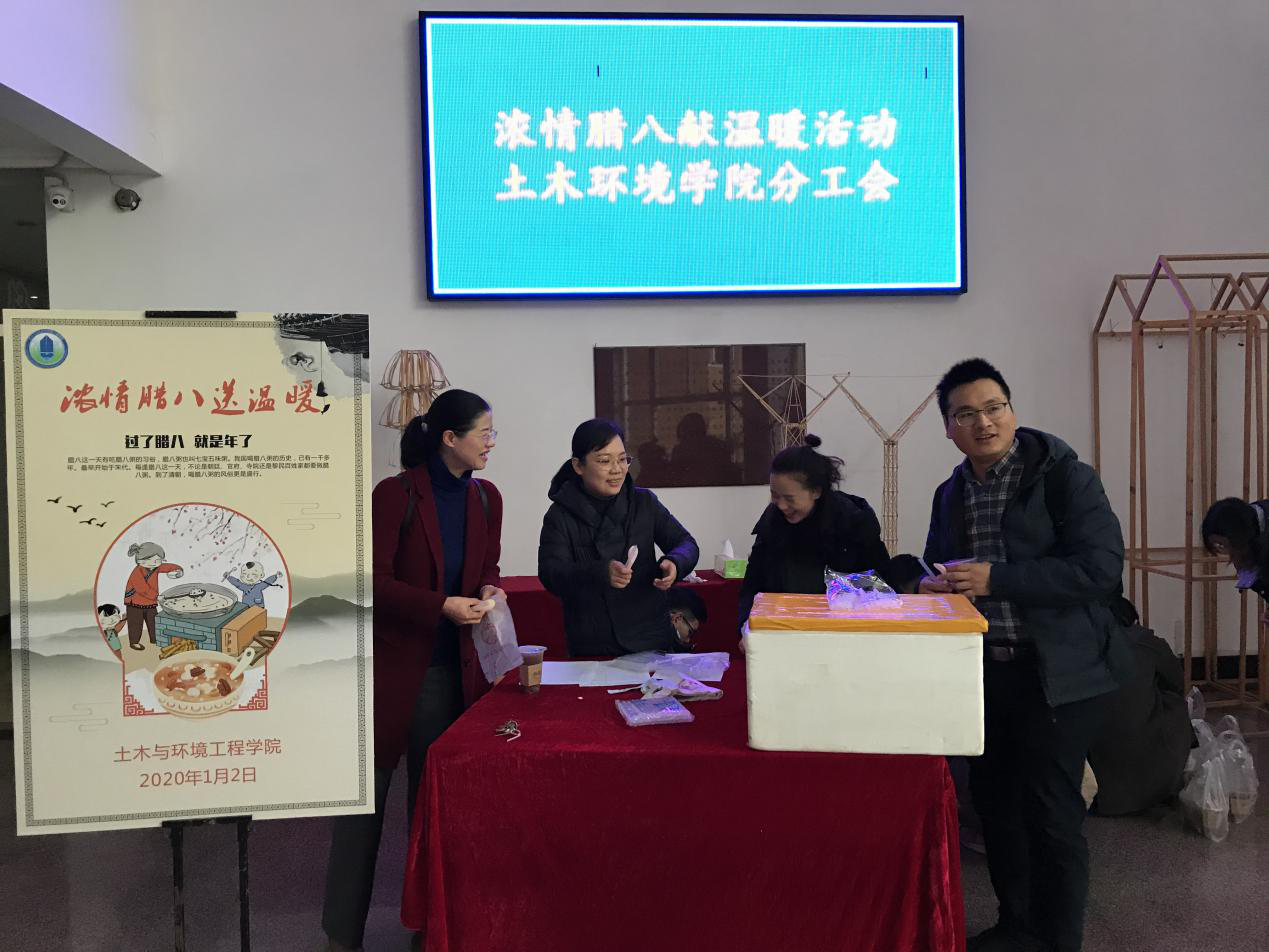 腊日常年暖尚遥,今年腊日冻全消。1月2日上午,土木与环境工程学院分工会在思禹建工楼一楼大厅举办了一场腊八节特别活动,用一碗碗热腾腾的腊八粥为全院师生驱散了冬日的寒气,温暖了全院师生的心。
