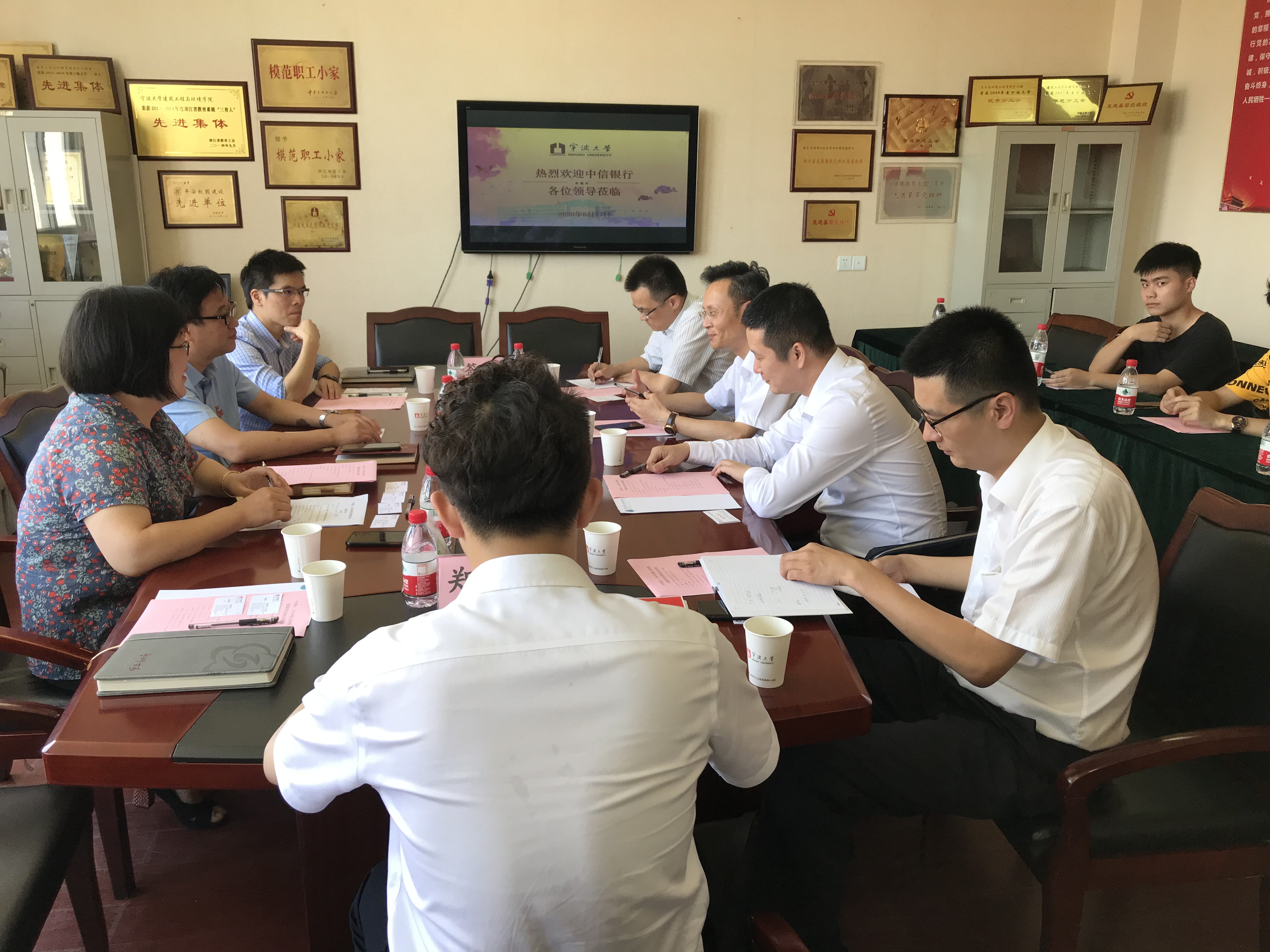 签约仪式上,院党委副书记汪丹就学院基本情况和党建工作做了详细介绍。中信银行宁波分行工会副主席、党群工作部总经理姚小荣介绍分行党建相关工作,表达了加强双方沟通联系,实现党建合作良性互动的愿望。院党委书记林奇凯致辞,对姚小荣副主席一行来访表示欢迎,对建立起校企党建互动合作关系寄予厚望,希望校企共同开展党建工作交流、志愿服务等多种形式的活动,搭建平台共建联学,开拓思路促进党建工作共同发展。