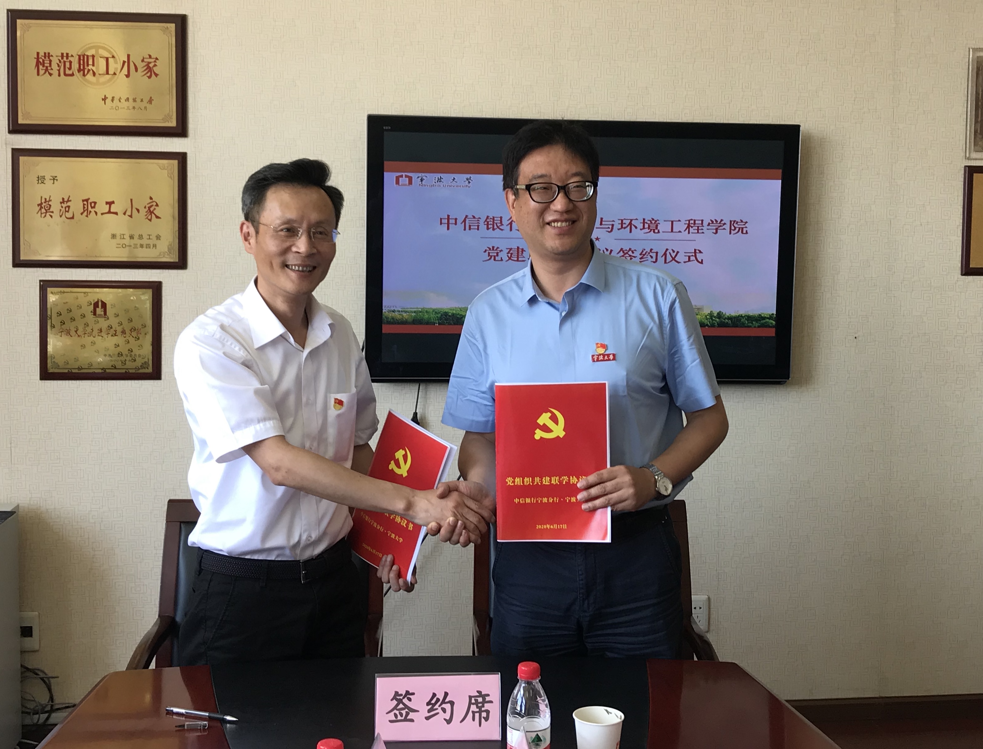 6月17日上午,黑料社 与中信银行宁波分行在学院党员之家进行党建联学协议签约仪式。中信银行宁波分行工会副主席、党群工作部总经理姚小荣、高新支行行长邱泼、高新支行副行长徐钱辉,院党委书记林奇凯、院党委副书记汪丹、环境系主任余振勋、院党政办主任兼分工会副主席王海芳等出席了本次签约仪式。
