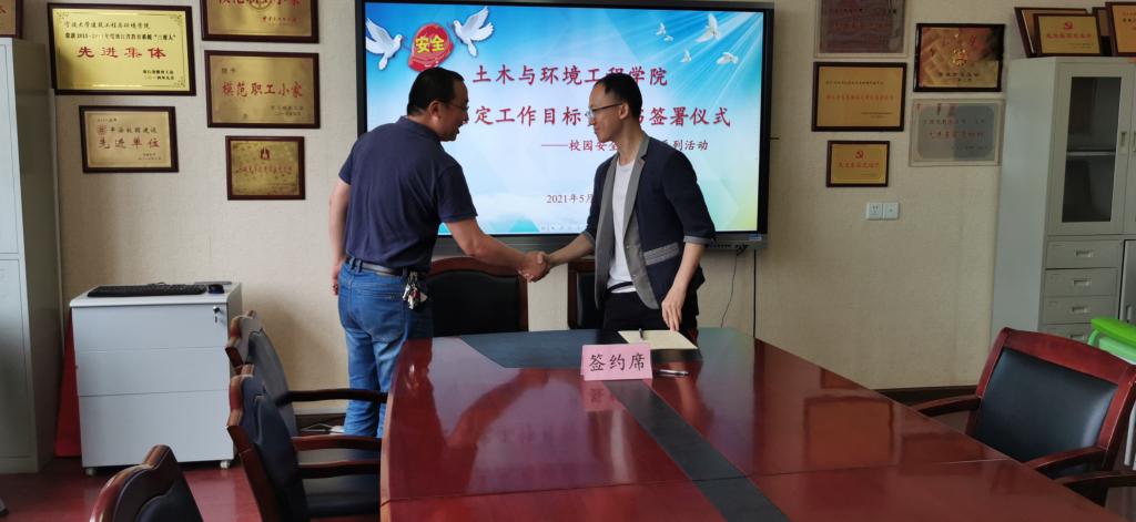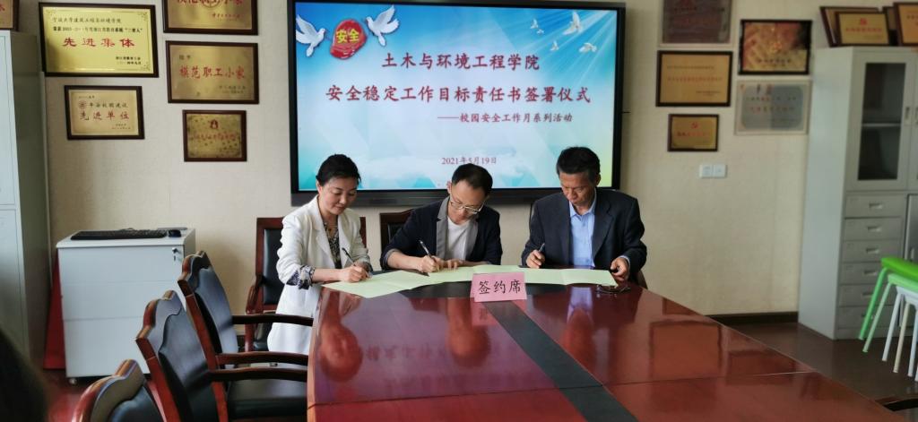 为贯彻落实“安全第一、预防为主、综合治理”的安全工作方针,切实加强学院治安综合治理、消防安全等工作,5月19日,黑料社 在学院303会议室举办安全稳定目标管理责任书签署仪式,院长郑荣跃、党委书记孔晓虹出席仪式。