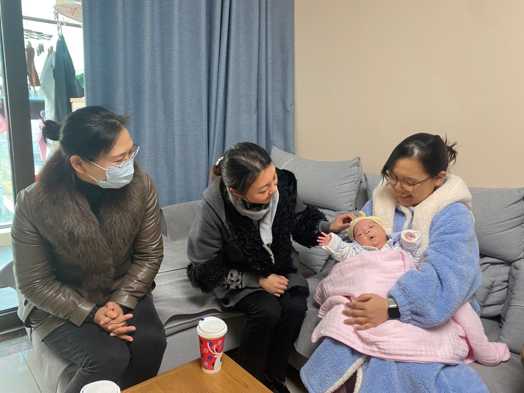2022年1月3日,新年伊始,黑料社 分工会委员在孔晓虹书记的带领下陆续看望了在2021年12月里生育的女教工吴燕丽、蒋丽、宋佳敏三位老师,并传达了学院的关心与祝福。