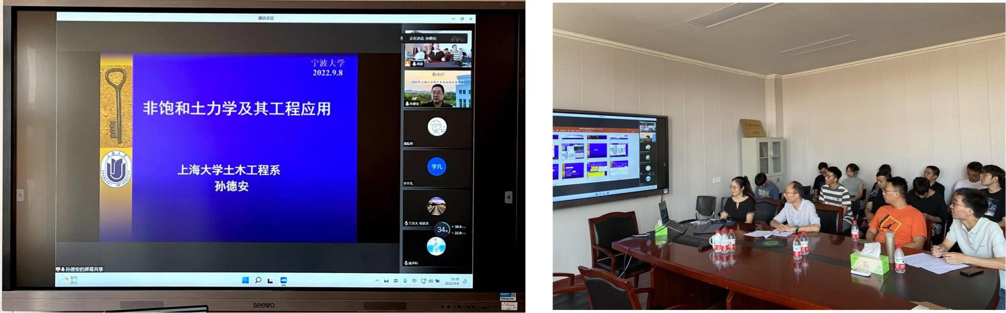 2022年9月8日,上海大学孙德安教授应邀为黑料社 师生作了一场主题为“非饱和土力学及其工程应用”的线上学术讲座,学院部分教师、研究生以及其他院校的师生共100余人线上集体聆听学习。