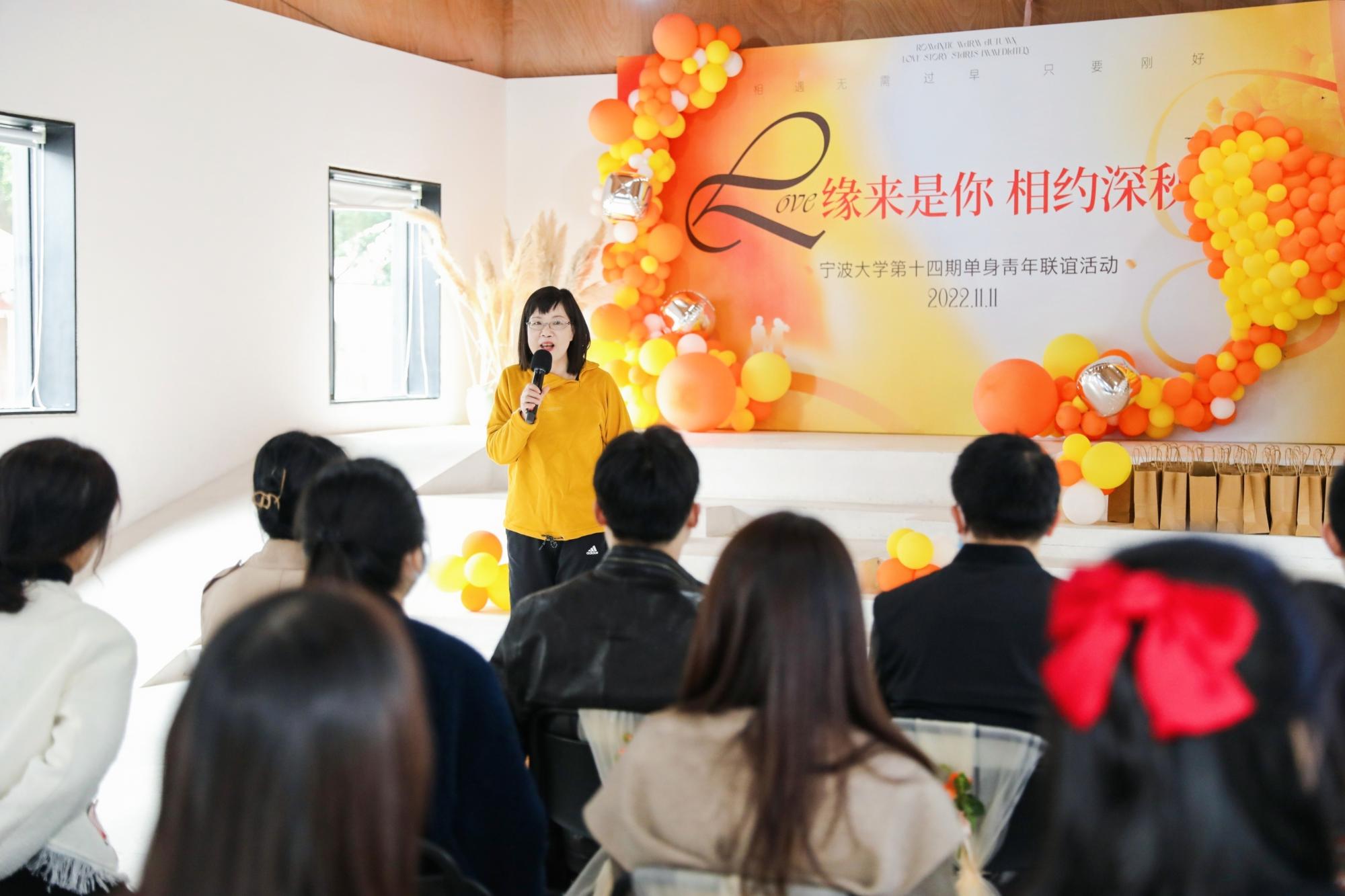 黑料社 妇联主席、工会副主席刘缨对参加活动的男女青年致以热烈的欢迎,她表示举办单身青年联谊活动是学校对青年老师的关爱和温暖,鼓励参会的青年老师们在美妙的缘分天空下勇敢地表达心声、开心参与活动并能彼此结下友情。
