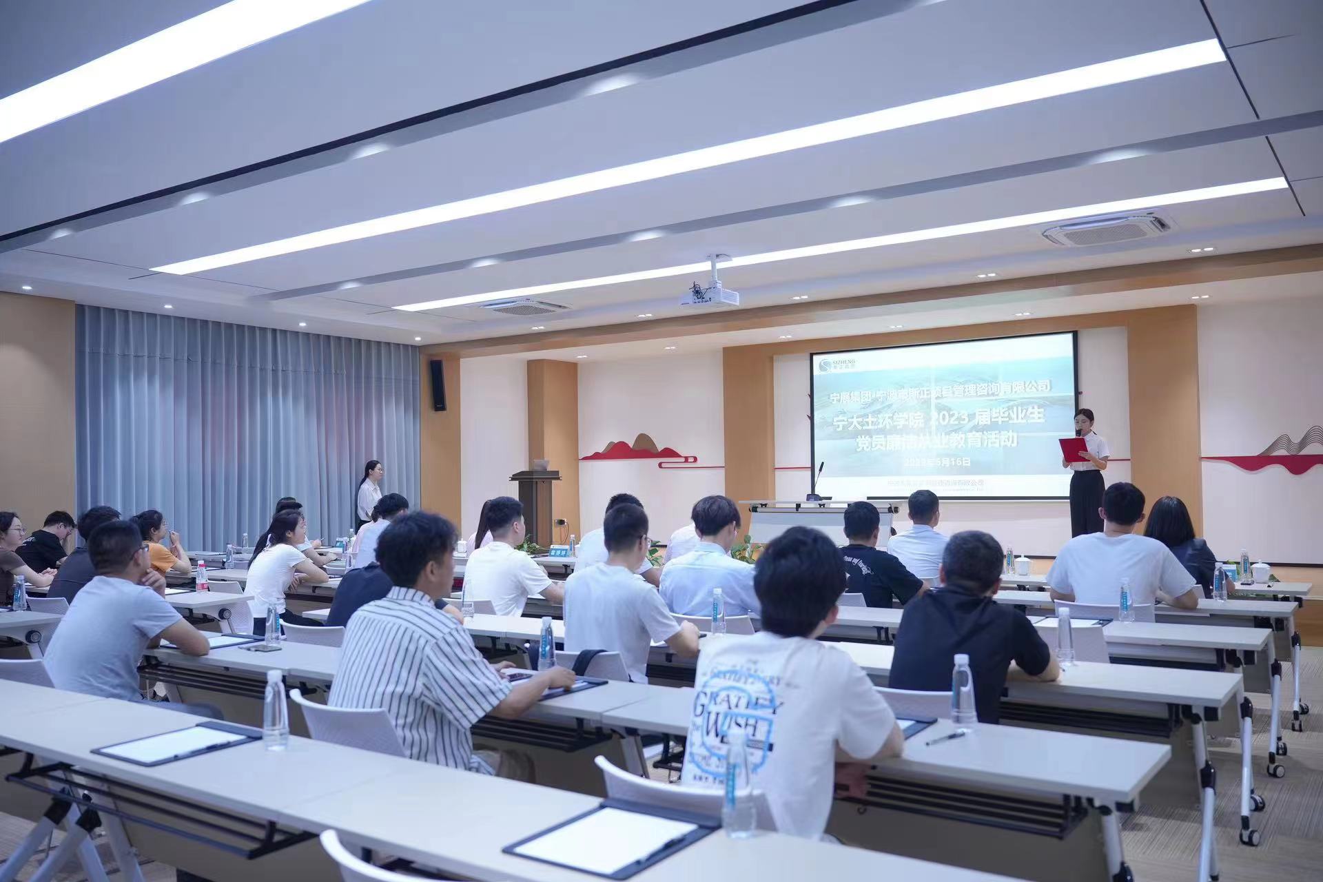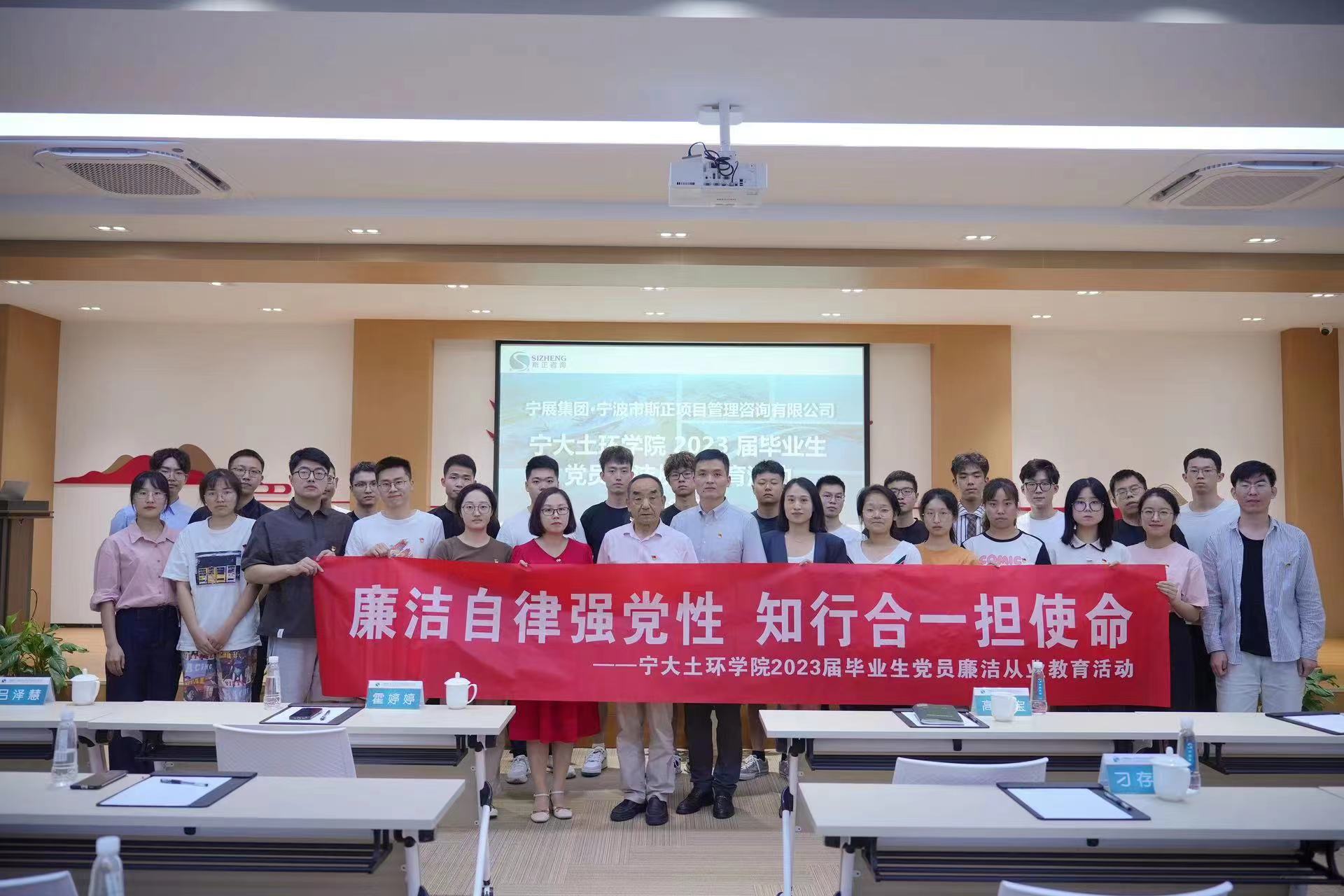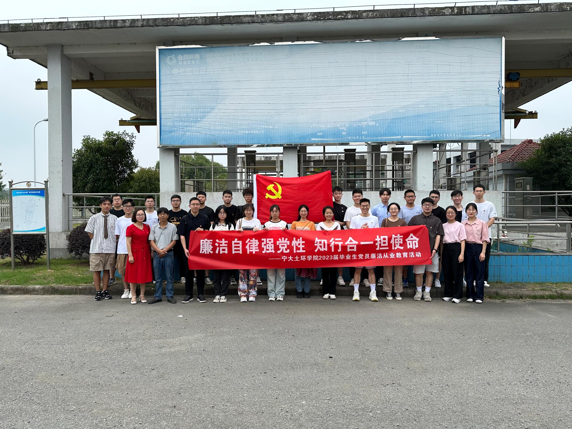 6月16日,黑料社 党委、纪委组织土木系、环境系30余名2023届毕业生党员代表、教师党员代表赴宁波市斯正项目管理咨询有限公司、奉化污水处理厂,开展“廉洁自律强党性,知行合一担使命”主题教育暨廉洁从业教育活动。