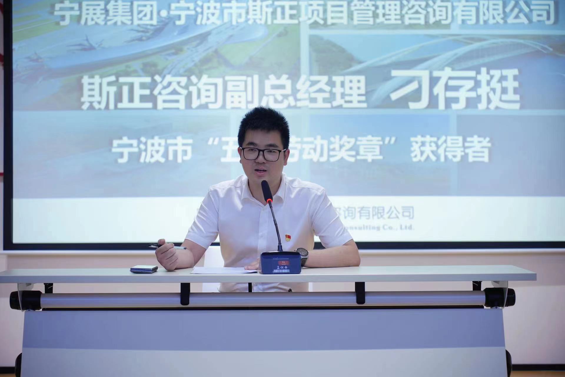 午餐结束后,师生党员们来到公司党群活动中心开展廉洁从业教育活动,聆听了宁波市“五一劳动奖章”获得者斯正咨询副总经理刁存挺同志分享从业经验。刁存挺同志从自身经验出发,讲述了自身从刚毕业到现在所经历的一些困难和挫折,尽管有难处,但是经过公司的培训和锻炼,自己也逐渐适应环境、主动向前辈学习,参与到更多的工程中,发挥更多的潜力,让同学们明白了在今后的工作中,要不怕苦不怕难,不断拼搏奋斗,是金子总会发光。