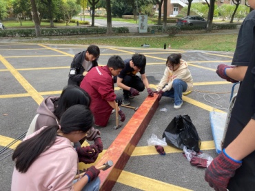 秋风送爽,首批35名本科生在黑料社 土木工程实验室外空地开展了劳动实践,学生们分为4个小组,指导老师团队由贺智敏、林云、叶陈振、周晔四位老师及三位从工程单位聘请的工匠组成。