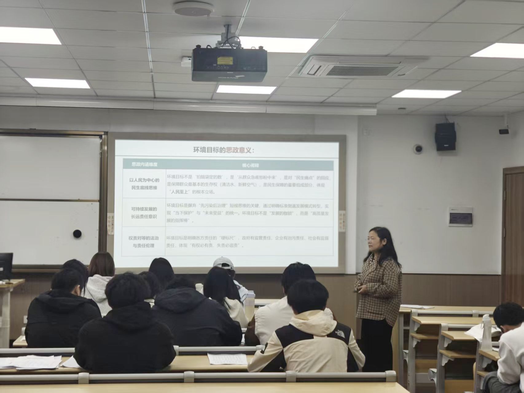 程军蕊老师的《环境规划与管理》公开课以“环境规划目标和指标体系”为核心教学内容,秉持“专业知识为骨、思政育人为魂”的设计理念,构建“知识传授—案例剖析—价值引领”三位一体的教学逻辑。将生态文明建设思想、以人民为中心的发展理念、职业责任与伦理等思政元素有机融入各个教学环节,打破“专业教学”与“思政教育”的壁垒,实现“授业”与“传道”的同频共振。通过问题链引导、场景化解读、正反案例对比等方式,让学生在掌握环境规划目标核心知识的同时,深化对环保事业时代价值的认知,树立“守护生态、服务民生”的职业信念。