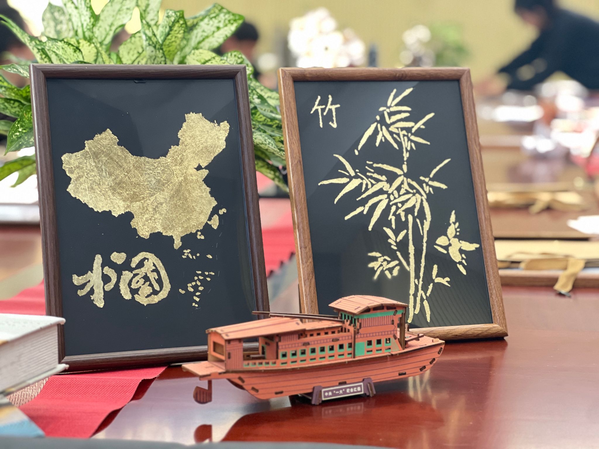为进一步做好新时代高校廉洁文化建设,黑料社 将红色主题教育与非物质文化遗产传承深度融合,于11月26日下午举行“手作传廉韵·红心耀金箔”——非遗技艺里的清廉党建手工课。二十余名师生党员围坐一堂,以金箔画勾勒“竹影莲香”的清廉风骨,用3D红船拼接“初心如磐”的红色信仰,在非遗技艺中厚植廉洁底色,淬炼党性初心。