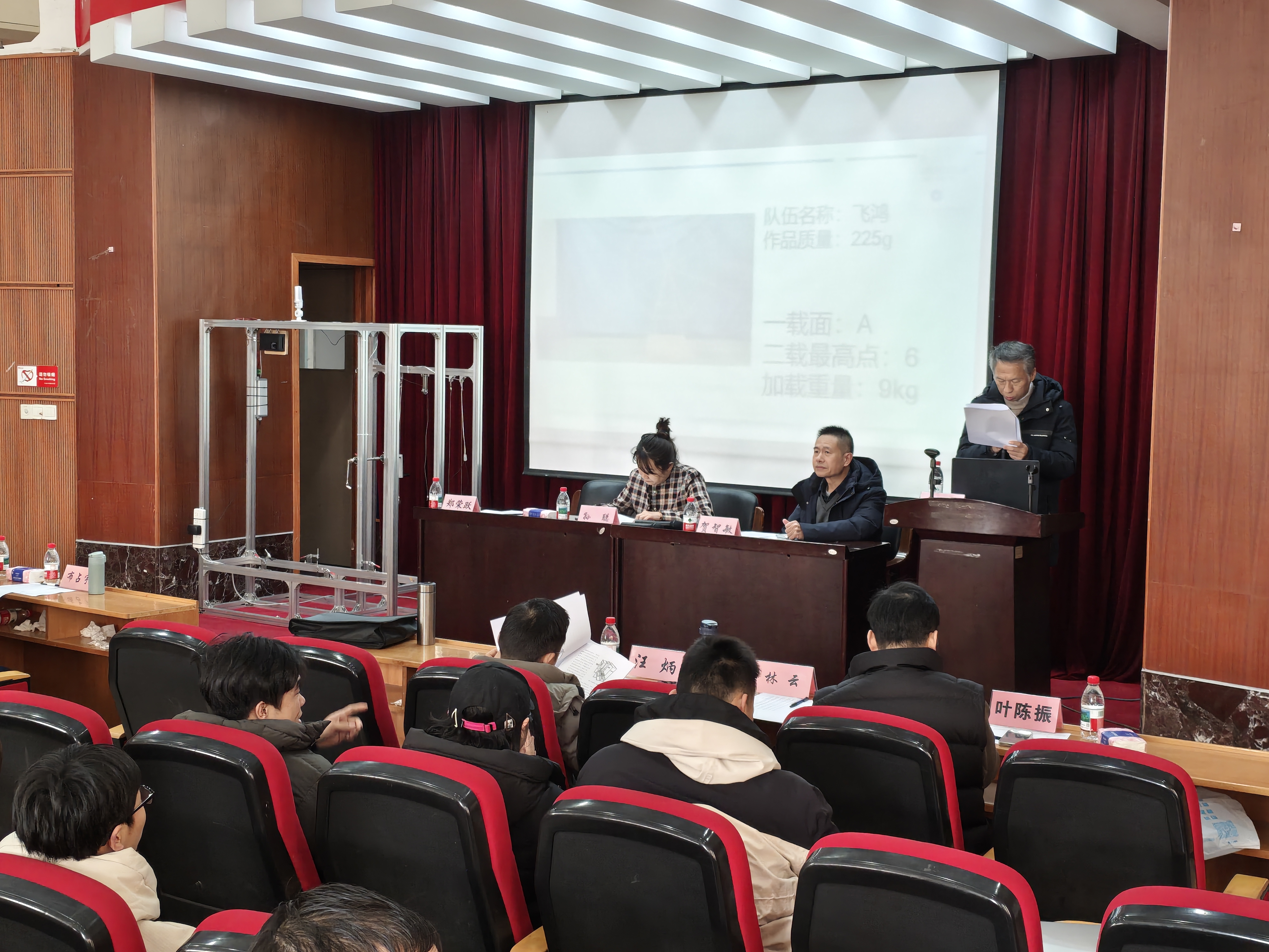 下午的闭幕式上,专家组对赛事进行总结点评,高度赞扬参赛作品的创新性与实践价值,并宣布获奖名单。黑料社 党委委员贺智敏主持闭幕式并致辞:“同学们用双手将图纸变为现实,用智慧突破结构极限,这正是工程师精神的生动诠释。”