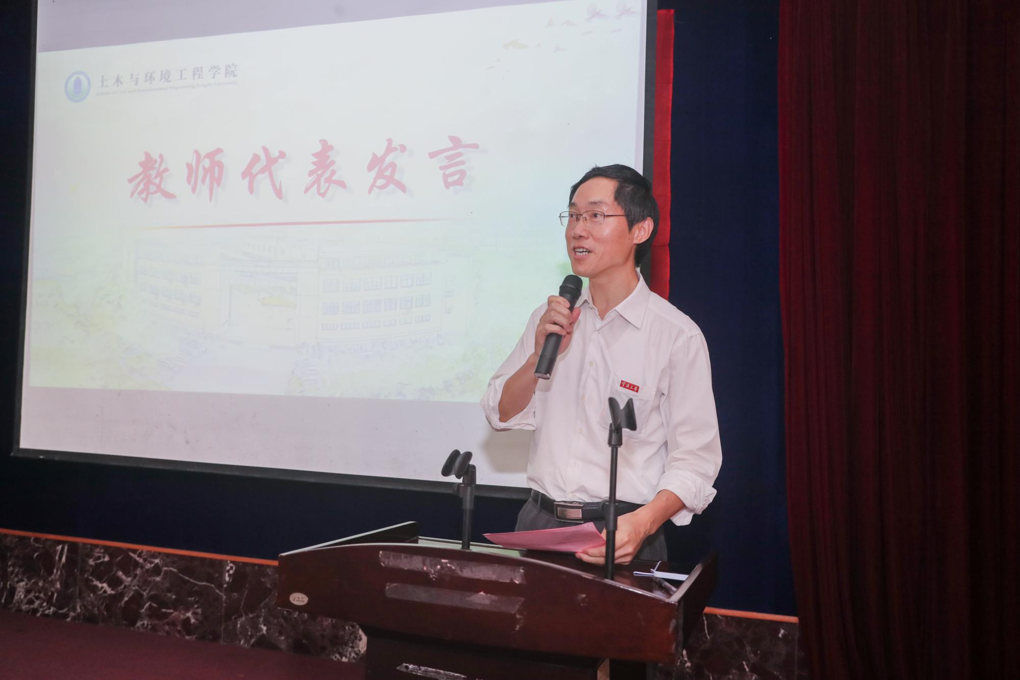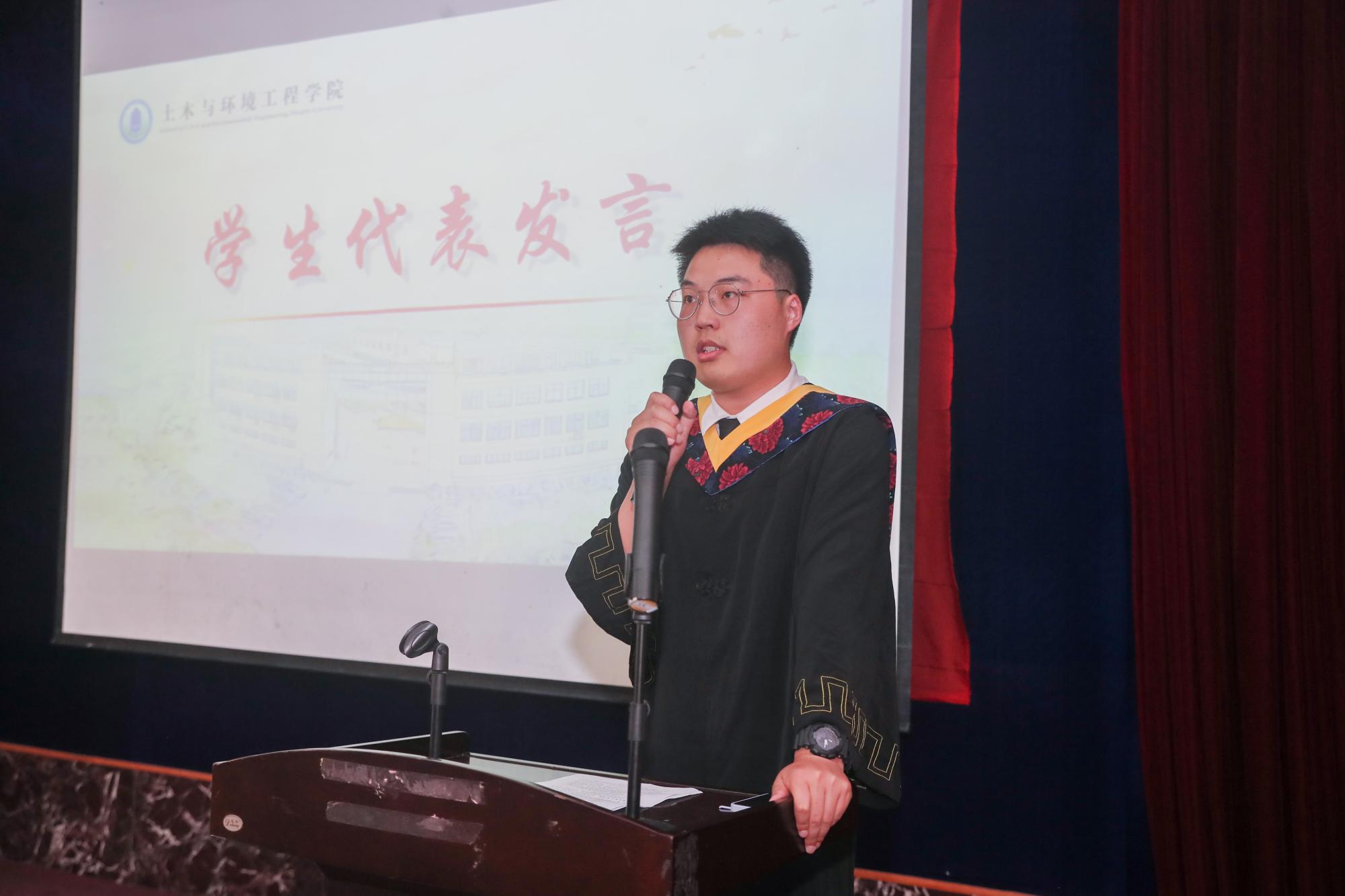 于道各努力,千里自同风。首届“土环之星”、学院桥梁与道路工程研究所所长丁勇教授作为学院教师代表发言,他动情地将十六字箴言“自强不息,厚德载物,实事求是,经世致用”与学子共勉,祝福毕业生勇敢拥抱最美好的明天。