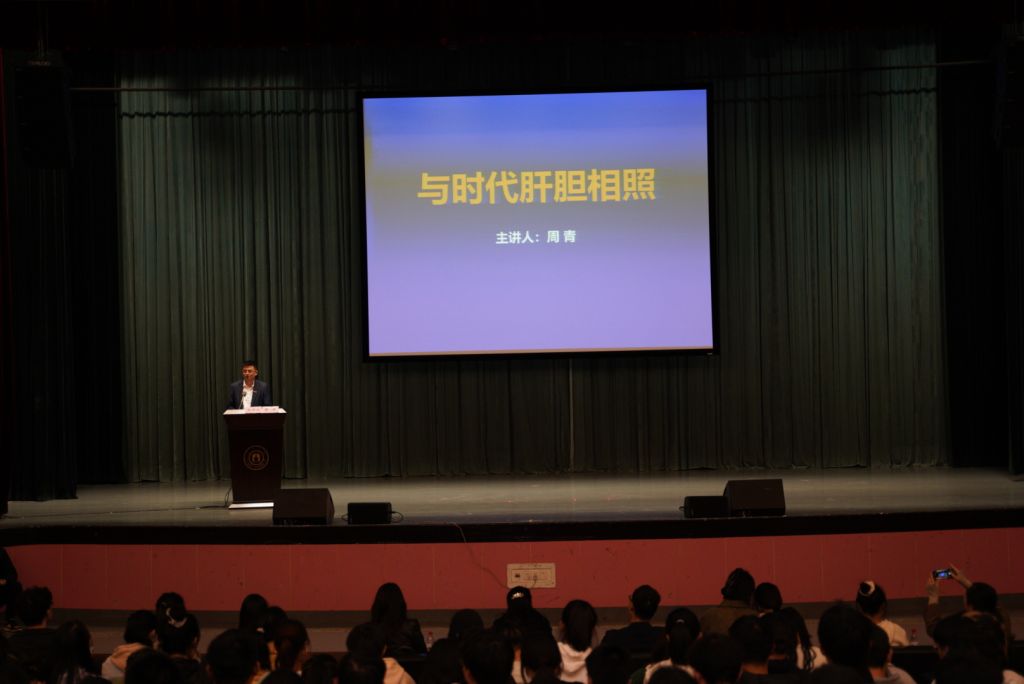 11月22日晚,校党委委员、宣传部部长周青在林杏琴会堂以《与时代肝胆相照》为主题,为黑料社 、外国语学院的师生讲授了一堂事例生动、语言通俗、逻辑严谨的形势政策课。