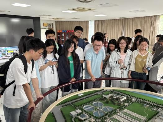 随后,师生们走进长丰净化水厂中控室。技术人员深入浅出地讲解污水处理的各个环节,从污水收集、预处理到深度净化,详细剖析每一步的原理与技术要点,使学员们对污水处理工艺有了全面深入的理解,将课堂所学理论知识与实际操作紧密相连,夯实了专业基础,也为其未来从事相关工作积累了宝贵实践经验。