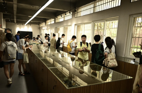 在本次活动中,我们依次探访四个特色鲜明的实验室,一同领略地理科学的无穷魅力。在地质陈列室里,李冬玲老师宛如一位“地球时间的解读者”,带领孩子们探寻岩石里隐匿的“亿年密码”。展柜中的矿物化石标本,恰似地球珍藏了亿万年的“时间碎片”,揭开了岩石所承载的地球历史的神秘面纱。李冬玲老师还为孩子们介绍了矿物的结构、成分和应用,让他们通过观察与触摸,进一步加深对岩石的理解。