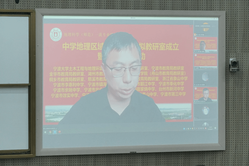 执行院长李加林介绍了虚拟教研室成立的背景和建设目标,国家地理教材建设重点研究基地主任、华东师范大学段玉山教授、浙江省地理教研员郭剑峰、宁波市地理教研员郑宇醒、台州市新河中学副校长李彩林等嘉宾先后致辞。
