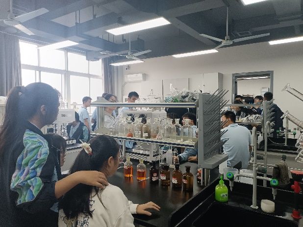 化学工程与工艺专业的实验室,在化学专业助教的讲解下,了解了催化裂化等工艺,并参观了年产45万吨PX(对二甲苯)仿真实训装置。