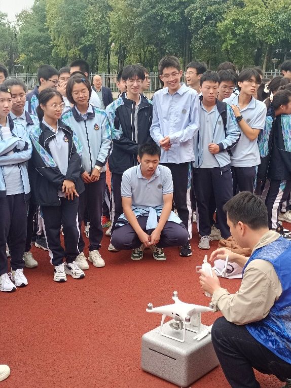 地理与空间信息技术系王利花副教授带领研究生向同学们演示无人机操作,邀请四中学子在各位研究生志愿者的帮助下体验了操作无人机。