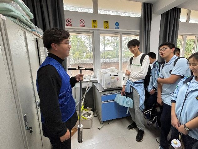 郑琦宏高级实验师的带领下,走进了环境工程专业的水污染控制实验室、环境工程原理教学实验室、环境微生物教学实验室、固体废物处理教学实验室以及环境监测教学实验室,理解人类日常生活与水、气等环境要素变化关系。