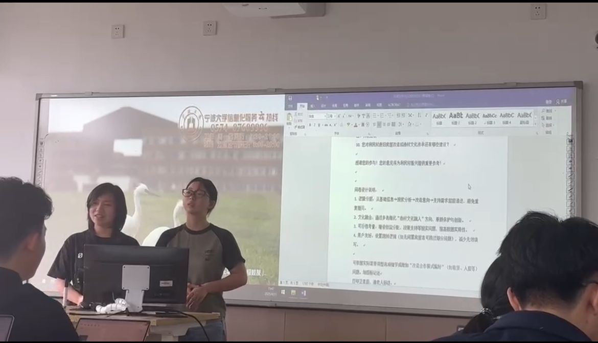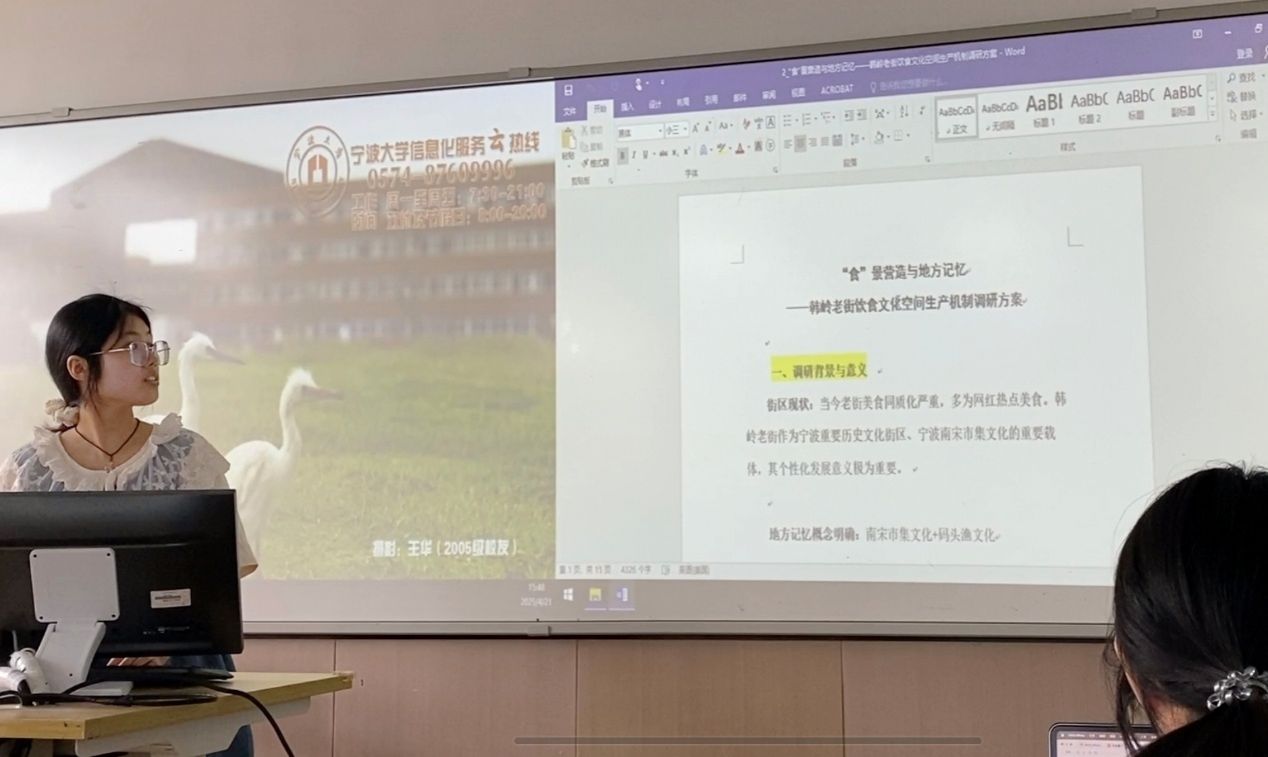 《区域分析与规划》是一门综合性、科学性突出的应用型基础课程,其教学内容涵盖区域与城乡规划的全要素体系,具有重要实践价值。23级地理科学(师范)2班共分成6个小组,以东钱湖区域为研究对象,从文旅保护、餐饮分布、水利设施等方面展开研究。经过前期文献研读、数据收集和组内研讨,各组在汇报中展示了初步研究成果,充分体现了同学们运用区域分析方法解决实际问题的能力。