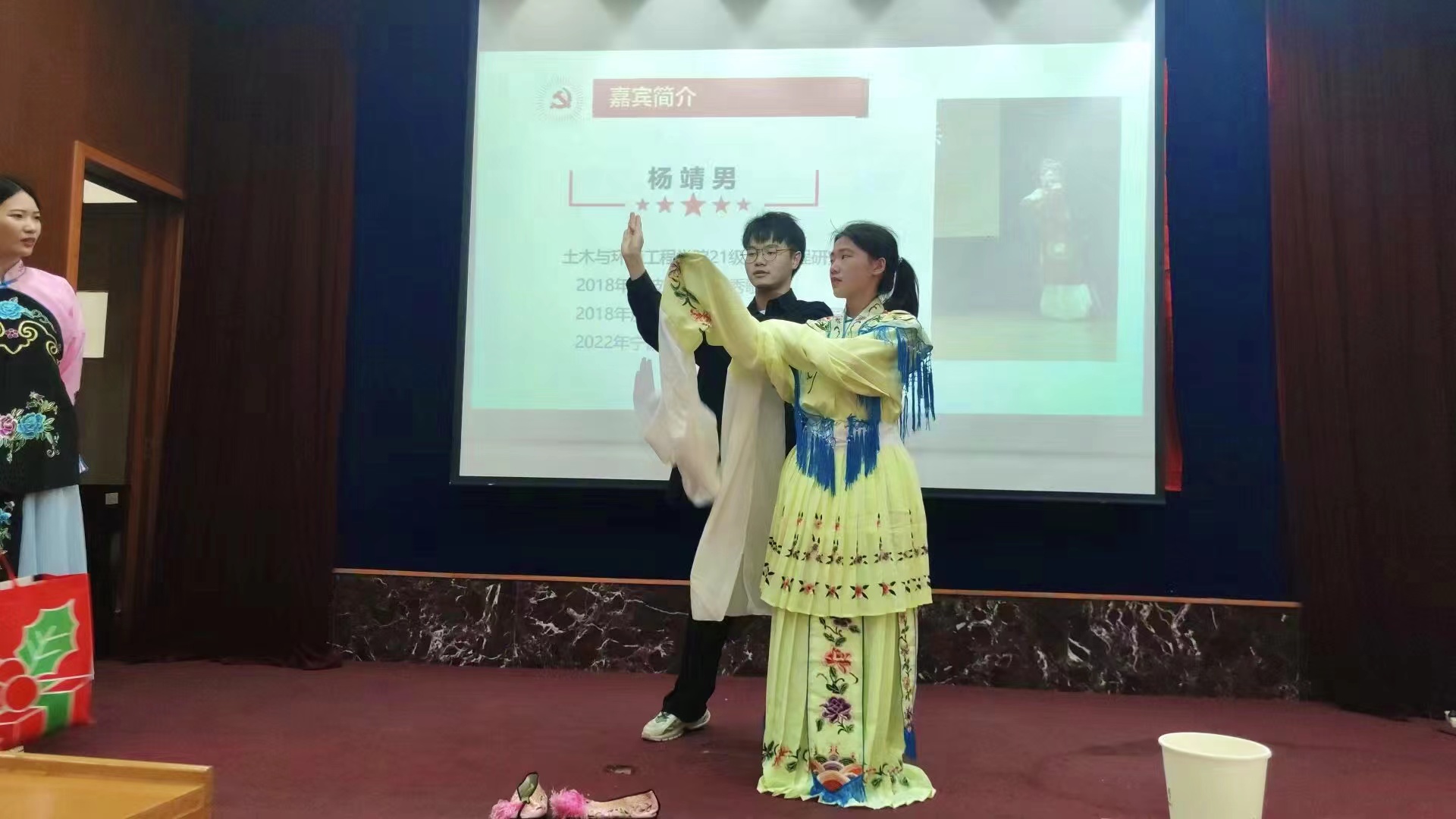 宣誓完毕后,学院党委、纪委委员为预备党员送上了“手作工艺粽”作为伴手礼,寓意“心‘粽’有党”。随后, 21级土木工程研究生、校园十佳歌手冠军杨靖男现场为大家演唱了京剧样板戏《红灯记》,生动再现了抗日战争时期的革命故事,并通过现场展示戏曲服装、台词表演等形式,将党史学习教育融入戏曲之中,引领在场师生共同感受传统戏曲艺术的独特魅力,深入体悟红色精神。