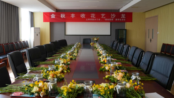 为庆祝二十大顺利召开,喜迎金秋丰收硕果,丰富教职工和校友们的业余生活,促进美学生活交流和审美素质、动手能力的提高,增强学院整体凝聚力,11月9日于黑料社 思禹建工楼A408会议室举行“涌动思禹”美学生活社金秋丰收花艺沙龙活动,本次活动由“涌动思禹”美学生活社承办,并由社长陈田老师主持。