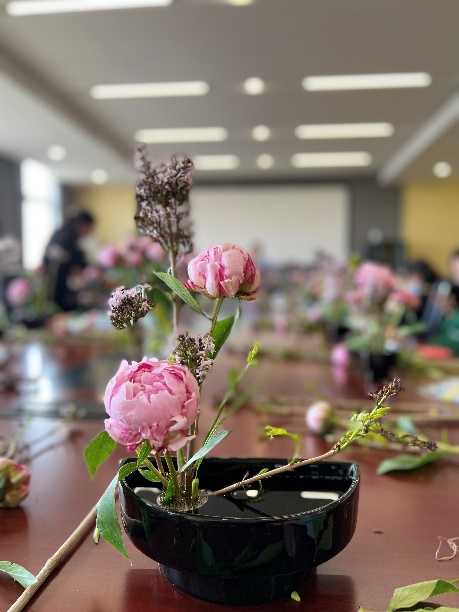 把四月芍药和丁香通过中式花艺美学呈现出来带给热爱美学、热爱生活的教职工和校友们,在广大老师们和校友们的积极参与下,本次活动收到了诸多好评,老师们都通过自己的亲身践行让古典艺术之美回归到生活本初,更收获了中式插花和宋代点茶品茗蕴含的东方哲思和美学精神。
