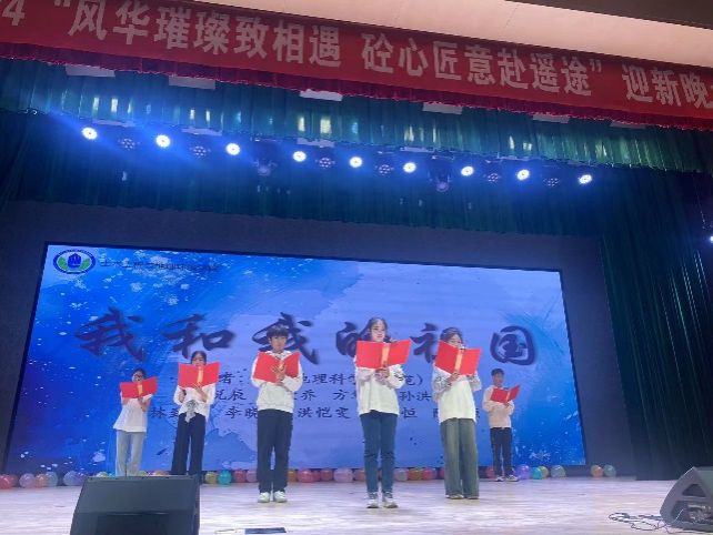 晚会尾声,24级地理科学(师范)2班的凤悦辰等同学表演了诗歌朗诵《我和我的祖国》,他们以最真挚的语言表达对祖国母亲的赞美。最后,台上与台下师生一道唱响歌曲《我和我的祖国》,共祝祖国母亲75岁华诞!