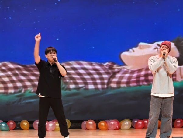 24级土木工程研究生班的杨丰逸与苏开钦同学合唱《等你下课》。少年无畏,青春也无惧以遗憾落笔,未来的广阔天地等待着我们去闯荡,引发了同学们的共鸣。